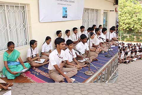 To instill the values of Bhagavad Gita, the globally revered scripture, our school organised a mass chanting of Chapter 4 - Gnana Karma Sanyasa Yoga on 3rd August 2023, the yoga of renunciation of Action in Knowledge. Students from Grades 5 to 12 participated, with 15 students leading the chanting and all joining in. A message from Chinmaya Mission was shared with the students. The session concluded with the National Anthem, fostering a profound sense of unity and spiritual awareness.