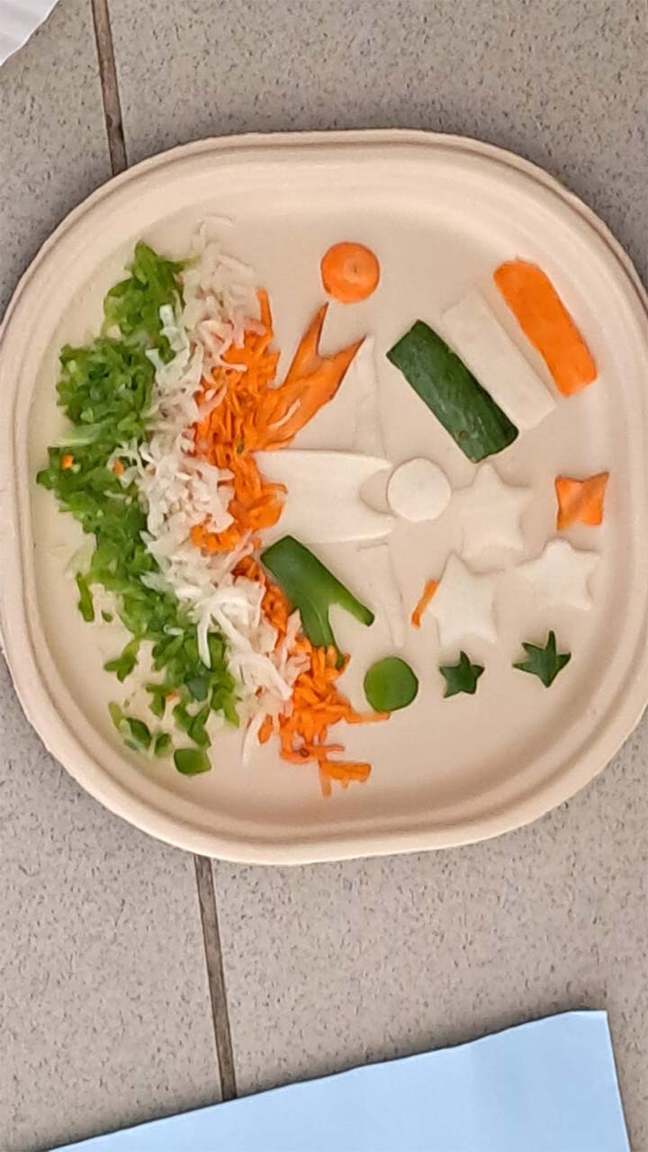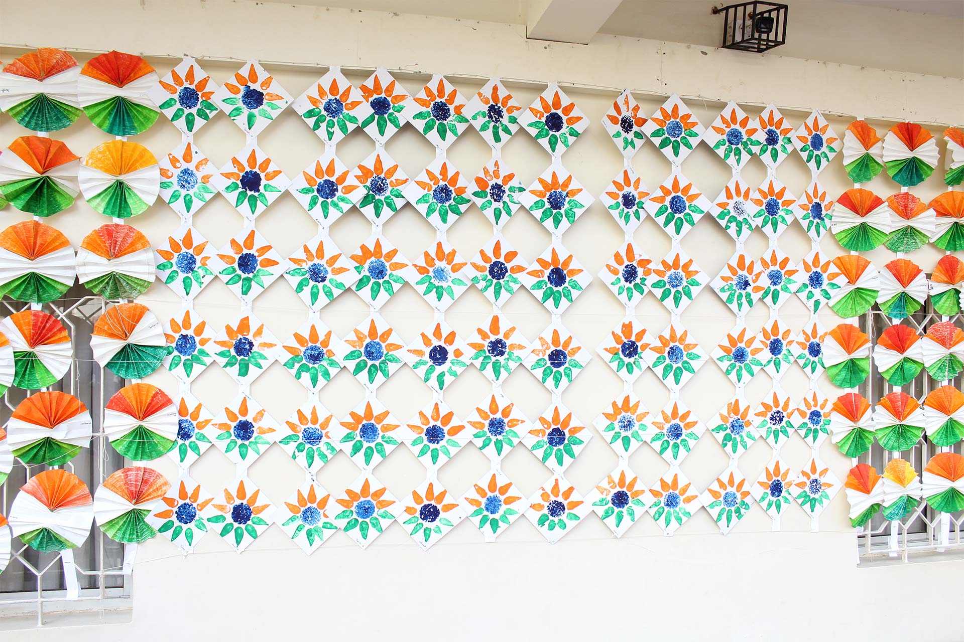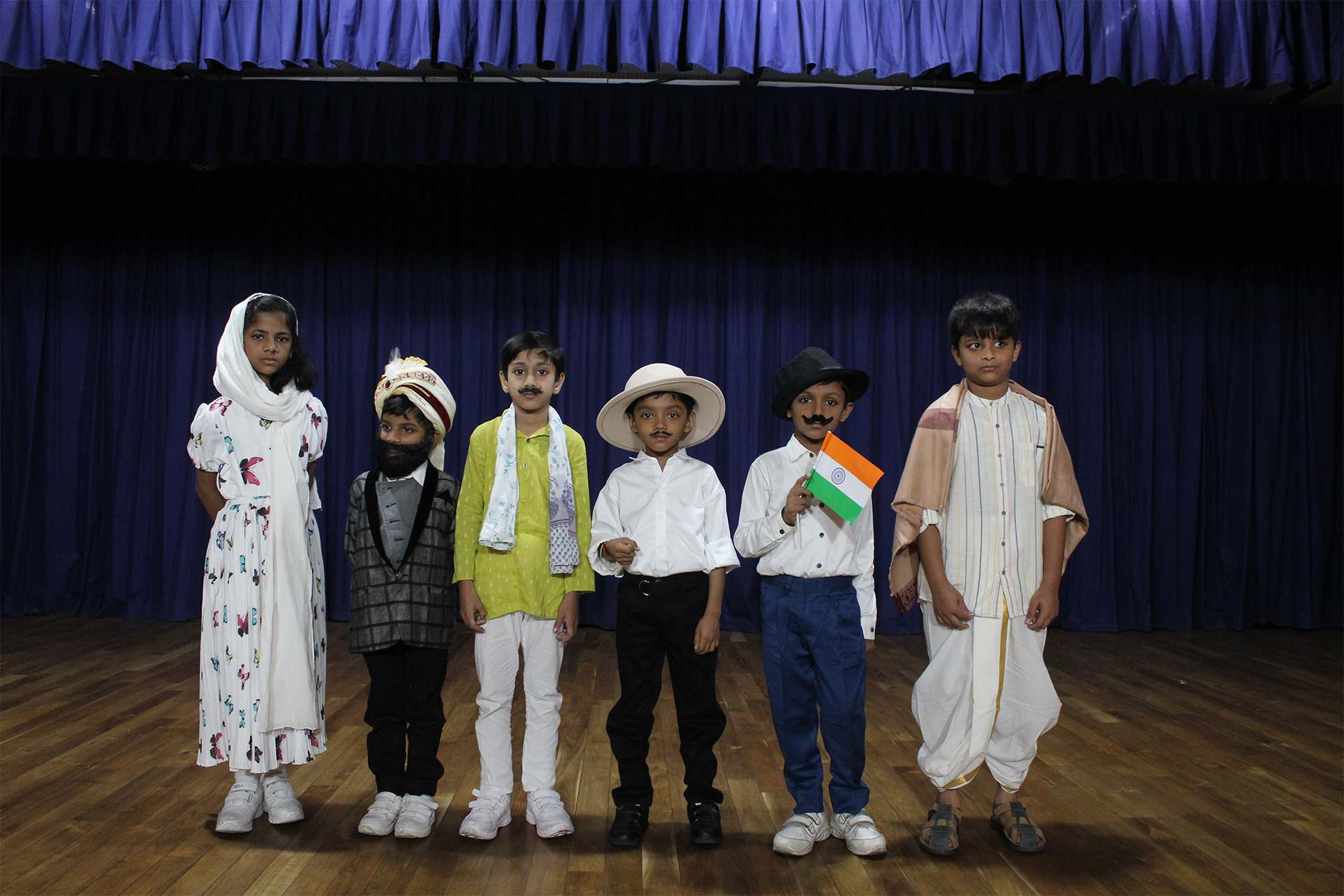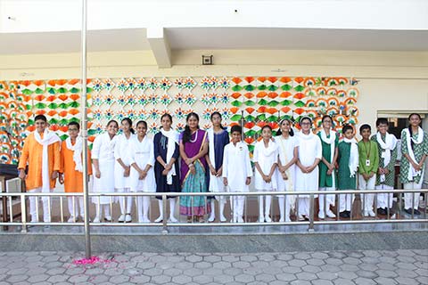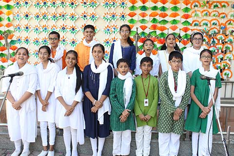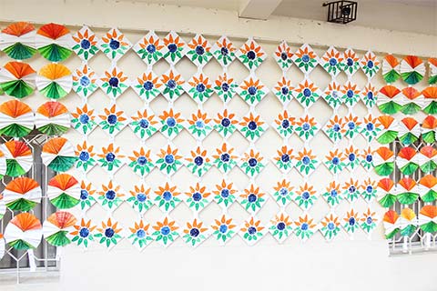 In the run-up to the day various activities were conducted. Vegetable in the tricolor were carved to make beautiful designs by students of grades 3 to 5. Students of grades 1 and 2 portrayed as erstwhile patriotic heroes in the fancy dress show.