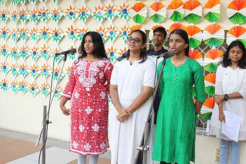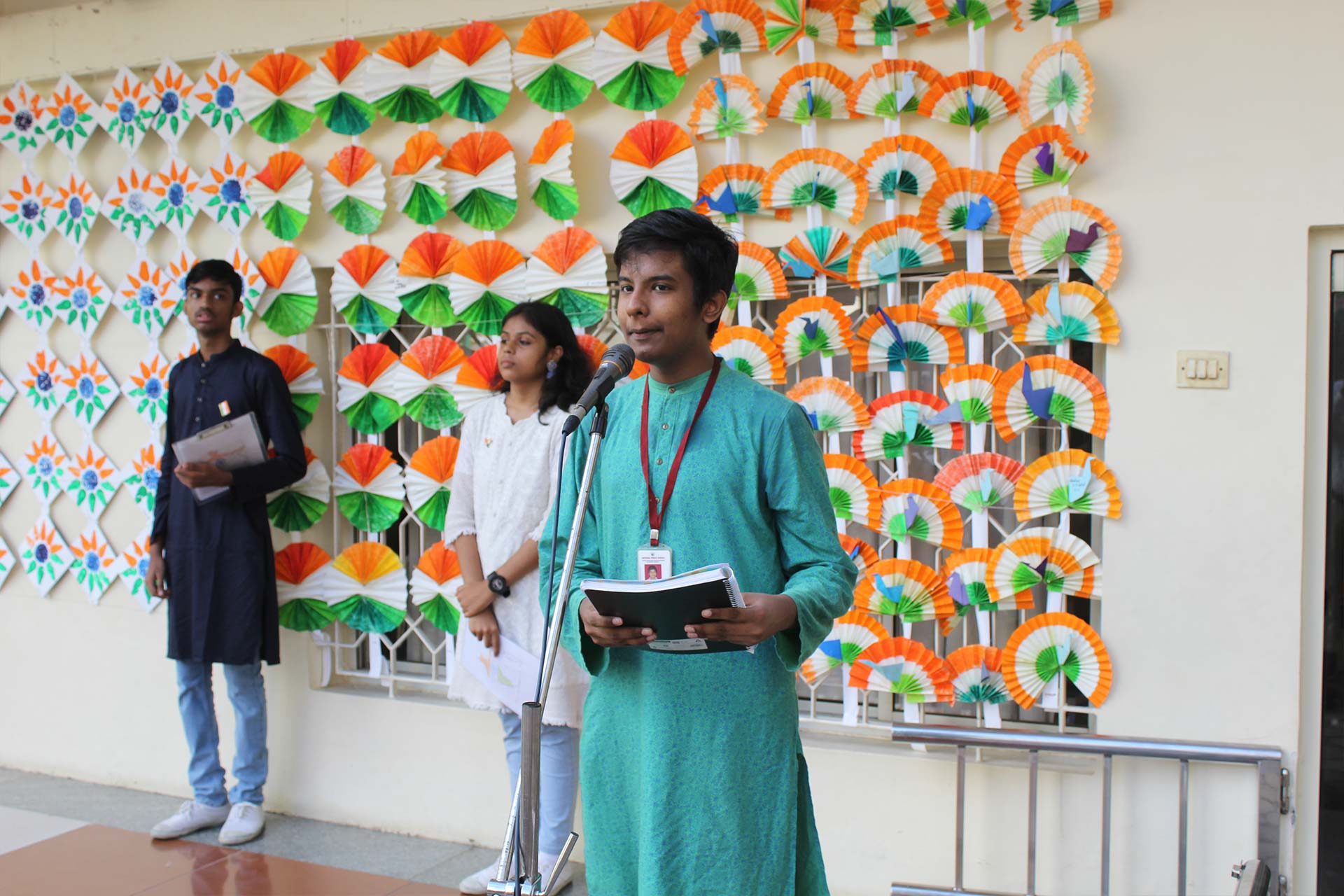 The spirit of unity in diversity was prominently showcased as students delivered patriotic speeches in English, Tamil, Hindi, and Sanskrit, each eloquently emphasizing the historical significance of freedom and paying homage to the indomitable spirit of our great leaders who paved the way for our independence.