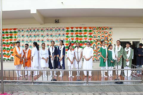 The 78th Independence Day was celebrated at our school with an immense outpouring of enthusiasm and respect. The school campus was transformed into a vibrant display of patriotism, with tricolored decorations meticulously crafted by students from grades 1 to 5 adorning every corner.. The melodious strains of a prayer song, performed by the school choir, filled the air, evoking a sense of reverence and unity among the gathering.
