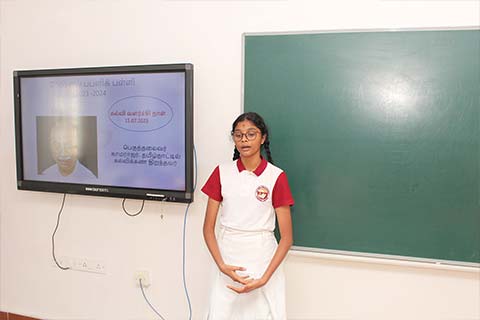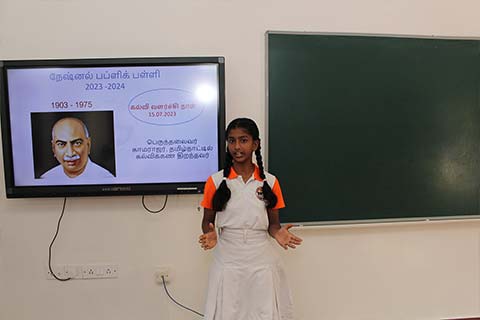To mark the birthday of Dr Kamarajar, Kalvi Valarchi Naal was celebrated and competitions were conducted in our School on 21st July 2023. The program commenced with Tamil Thai Vaazhthu, followed by welcome speech by Mrs. J.T Jayasree, in-charge teacher of the Vaanavil Tamil Mandram. Students of grades VII and VIII participated with great enthusiasm in the Poetry writing, Drawing & oratorical competitions on the topic - “The life and work of Kamarajar”.
