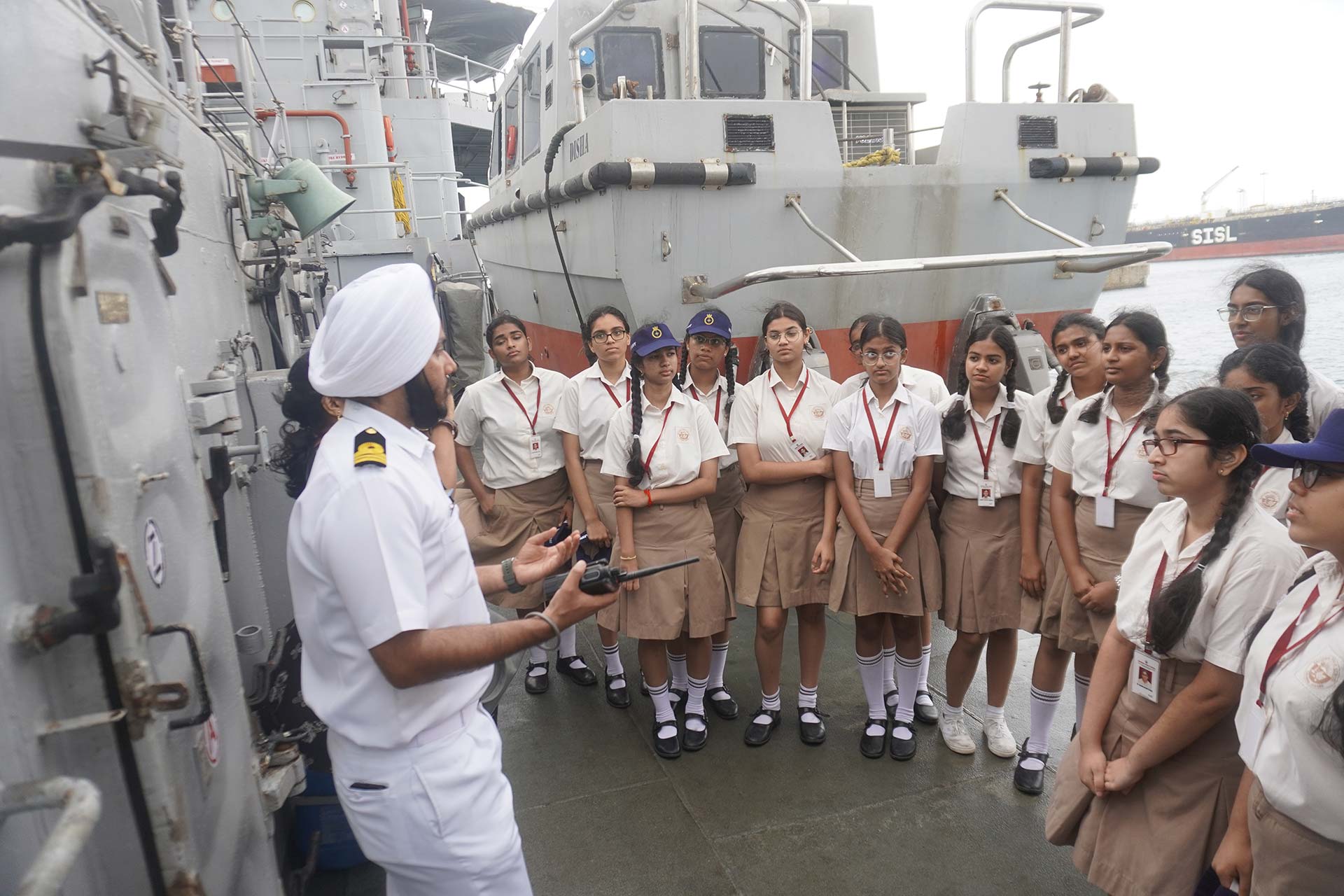 “We saw the magnificent interior which included learning about how navigation maps are made and used. We were also educated about SONAR – Sound navigation and ranging as well as firearms. We learnt about anchoring techniques. The naval officers were very accommodative. They sacrifice their personal time for our nation. This was a splendid trip-one worth taking.” - Shravanti Narayan, X ‘A’