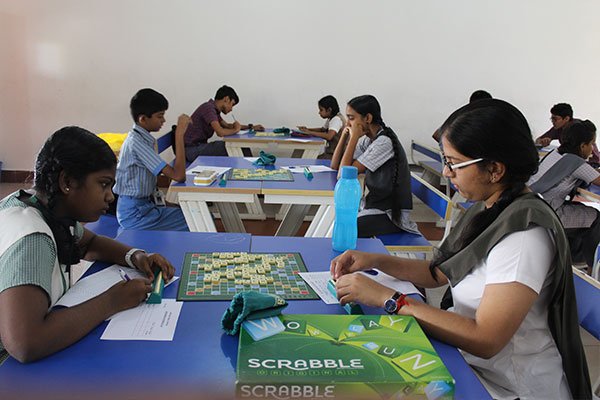 The fourth Inter-School Scrabble competition LINGO-BINGO 2017-18 was held with 50 participants from over 10 schools. The tournament was conducted by the tournament directors - Mr. Mohan Chunkath, Mr. Ranganathan Chakaravarthy and Mr. A Krishnan - all three top ranking scrabblers in India.