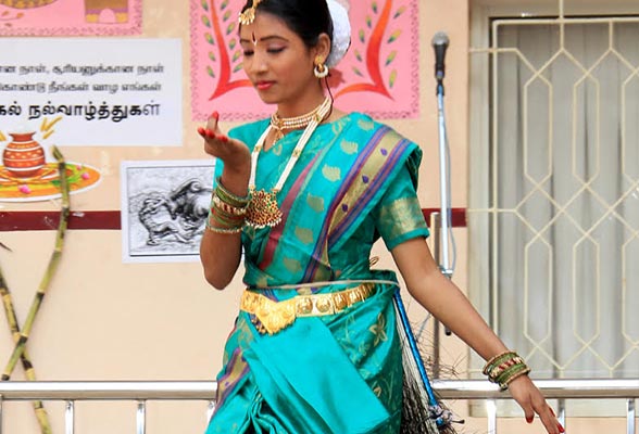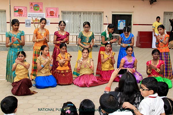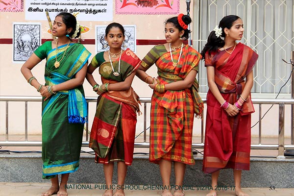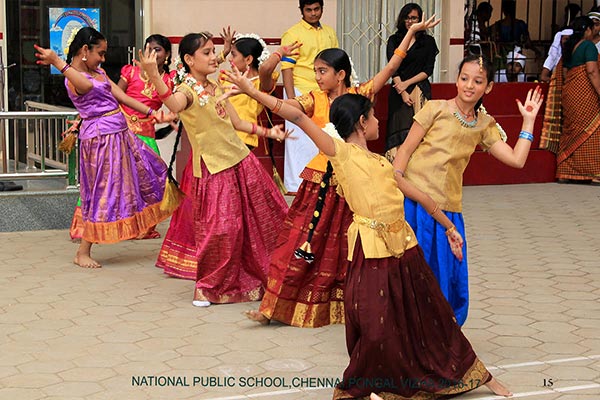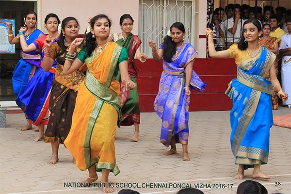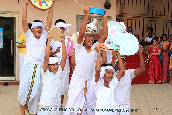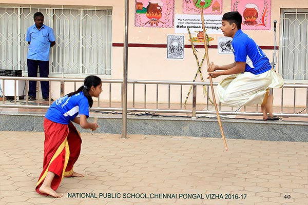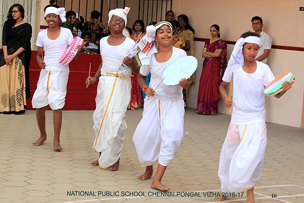 Pongal was celebrated on the 10th of January, 2017 with a colourful presentation of the various folk arts of Tamil Nadu. The programme began with the importance of the Margazhi month and the festivities associated with it. This included “Kummi Dance”, “Thapaatam”, “Silambattam”, “Oliyattam” and “Poikal Kuthirai Attam”. A scene of how Pongal festival is celebrated in villages and cities was depicted. The celebration ended with the Uriaddi tradition of breaking the pot by the senior students.