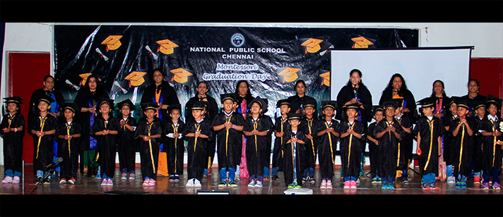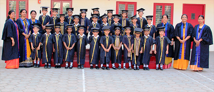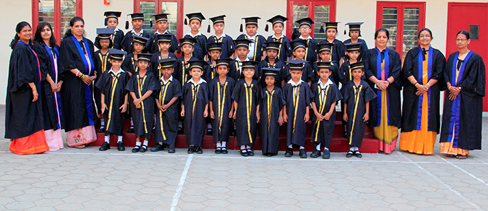 The Montessori Graduation Day ceremony commenced with the little children narrating their experiences and the things they liked most about being in Montessori. Certificates and mementos were given to the graduating children which was greatly appreciated by the overwhelmed parents and grandparents who were present at the programme. The children sang the song “We shall overcome” in English, Tamil and Hindi. The finale was a power point show which visually captured the journey of all the graduating children through their 3 years in Montessori. The programme ended with the rendition of the National Anthem.