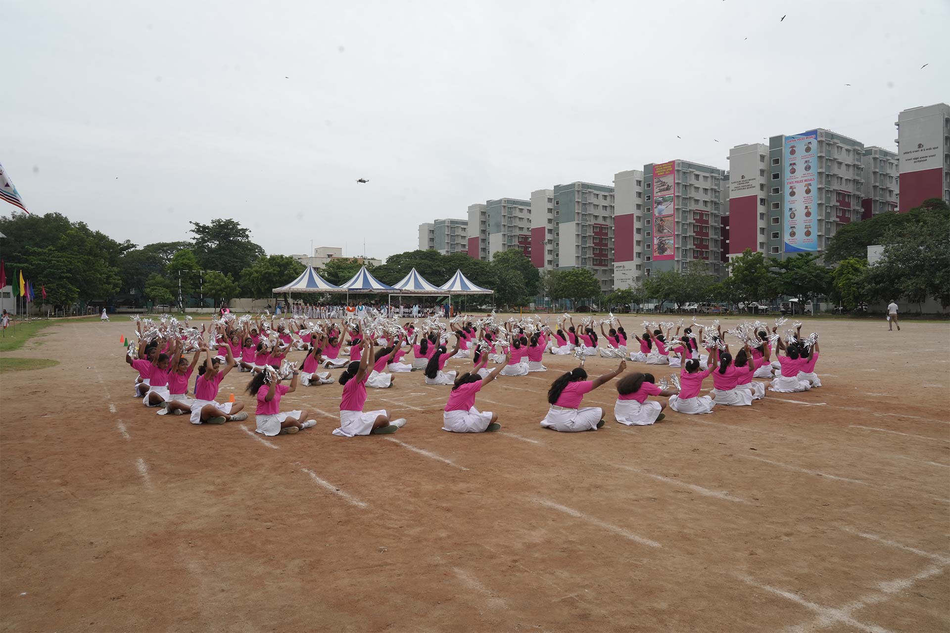 The event saw several demonstrations and drill performances across various grades. Students of grades 1 to 12 showcased rhythmic, coordinated and energetic movements demonstrating their control, teamwork and fitness. The human pyramid was remarkably displayed symbolising teamwork, unity, and balance. Following the drills, the track events were conducted which displayed the athletic skills of the students.