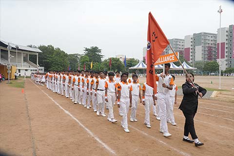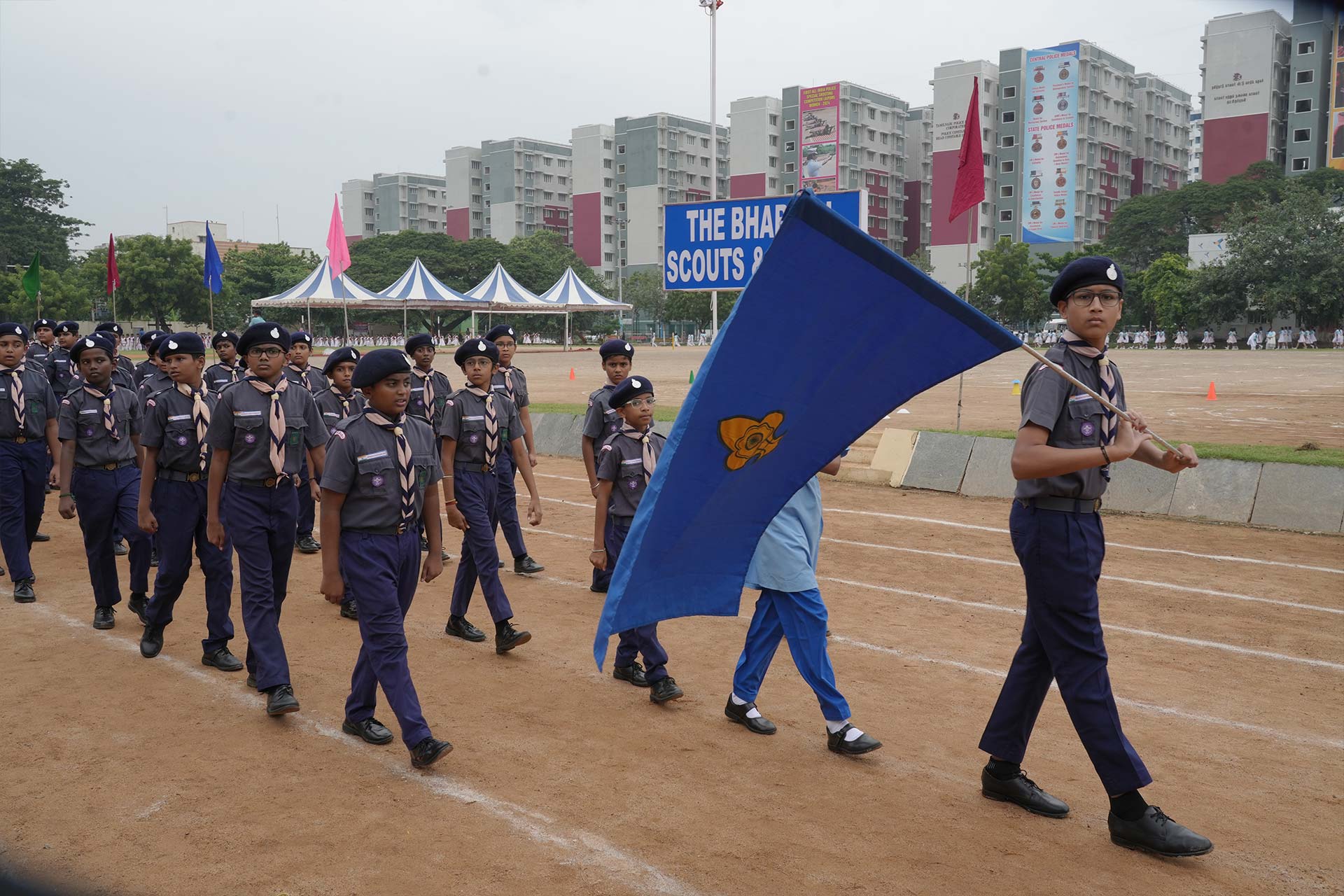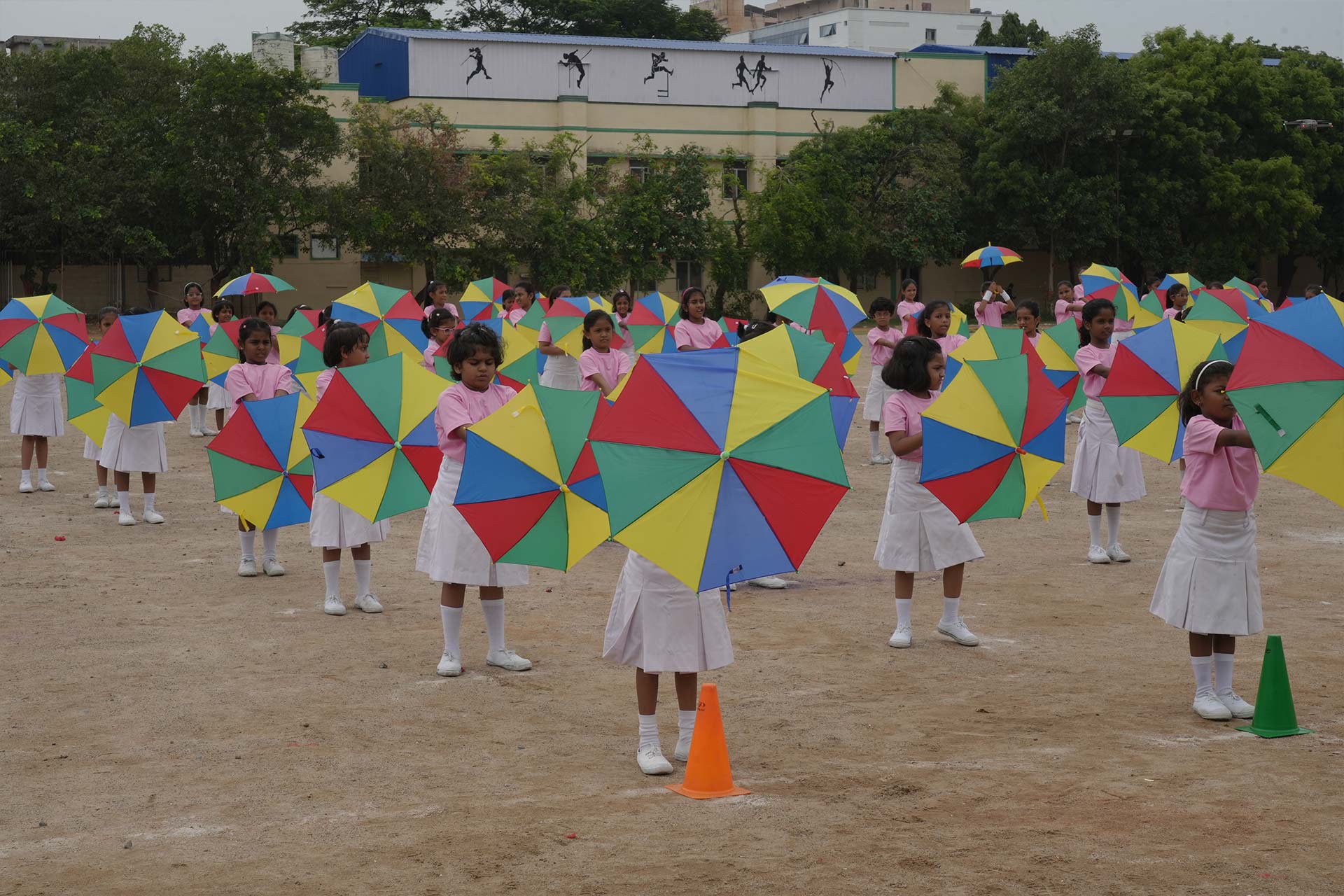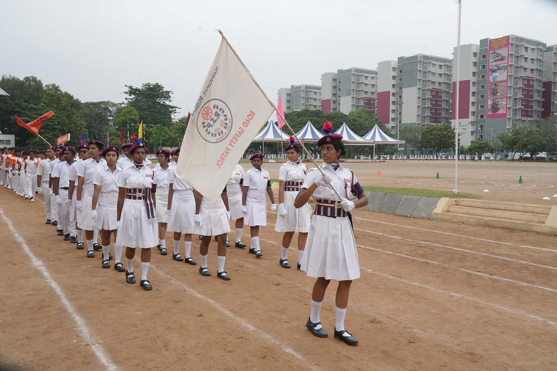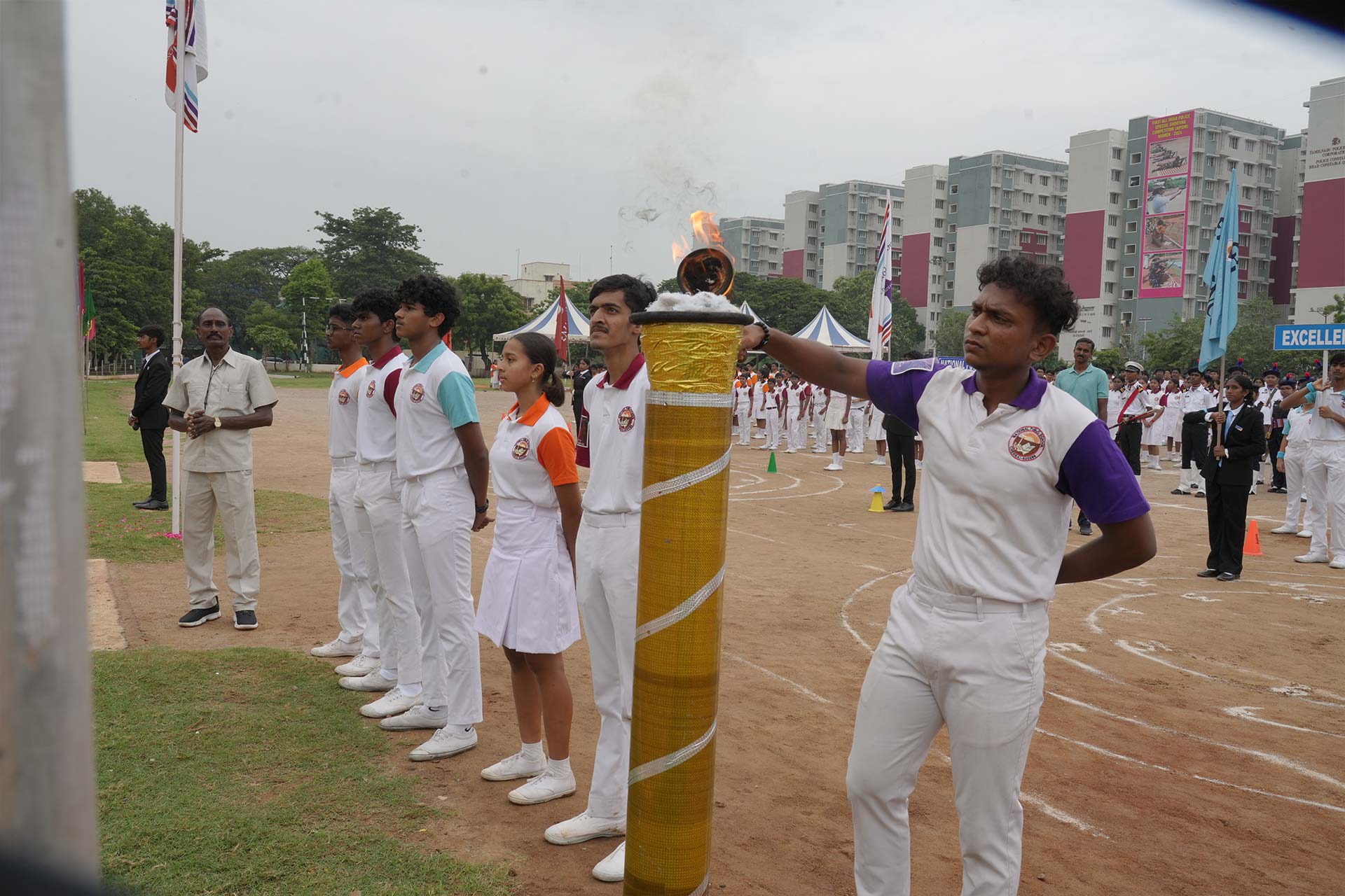 The event commenced with an invocation followed by a warm welcome address by the Principal Mrs. Sujatha Bokka. Mohamed Arshaan Miyan, Sports Secretary, and Rhea Chandra, Assistant Sports Secretary, felicitated the Chief Guest. The Cubs and Bulbuls greeted the Chief Guest, marking the beginning of the grand March Past. The school band showcased their musical talents as the contingents marched forward. The parade was led by the Sports Secretary, Mohamed Arshaan Miyan, along with the School Pupil Leaders, Sai Sharan and Heeba, and the Assistant Sports Secretary, Rhea Chandra. Each house was guided by its captain and vice-captain.