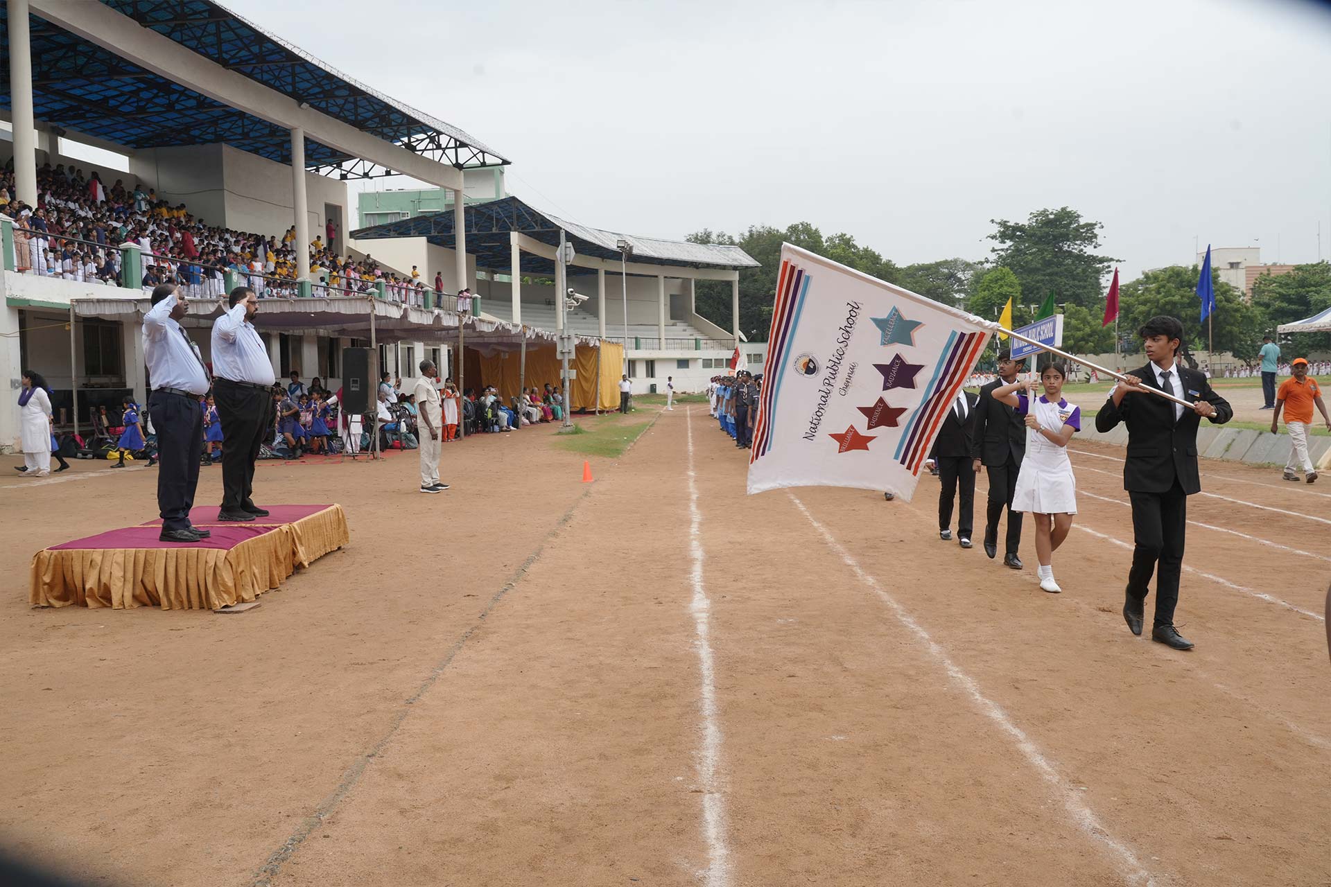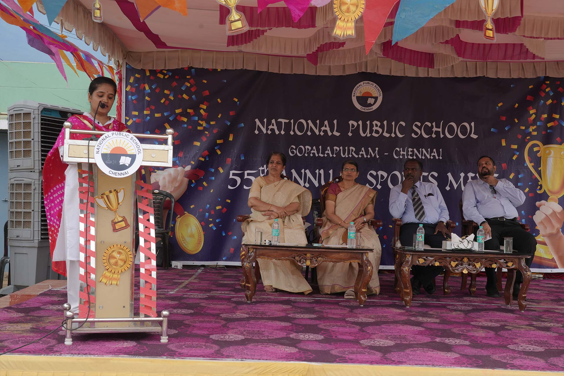 The 55th Annual Sports Meet of National Public School, Gopalapuram, Chennai, for the academic year 2024-25, was held with much enthusiasm and grandeur. It was graced by the presence of the esteemed Chief Guest, Dr. Johnson Premkumar, Principal of YMCA College of Physical Education and Mr. Hari Krishnan, CEO of National Public Schools.