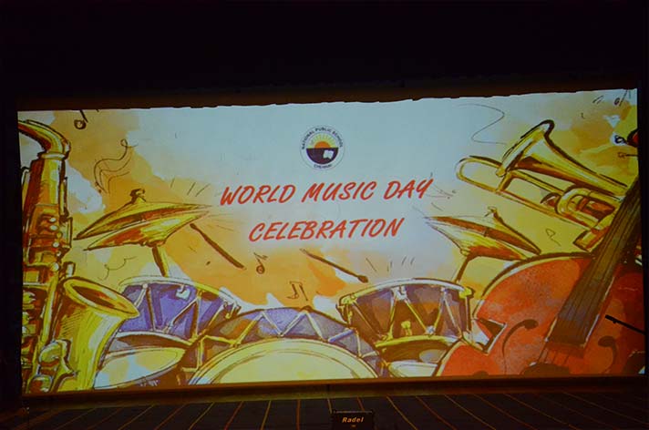 National Public school celebrated World Music Day on 17th June 2022 to coincide with the opening of the refurbished auditorium. The event started with lighting of the lamp led by the Chief Guest Mr Murali Krishnan Founder director - Jus Drums. It was followed by a visual presentation about music and its history.