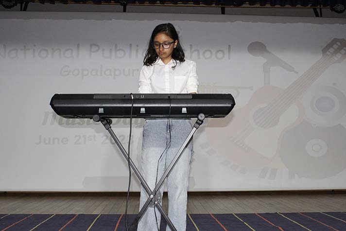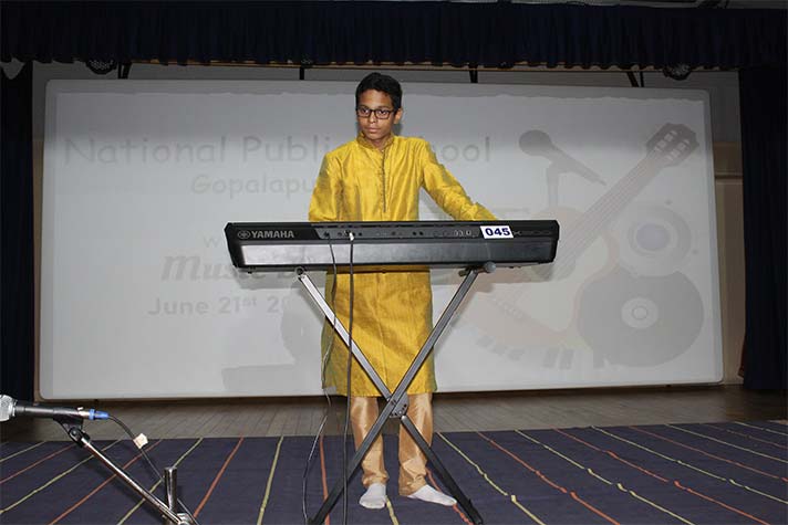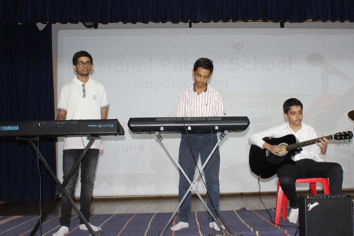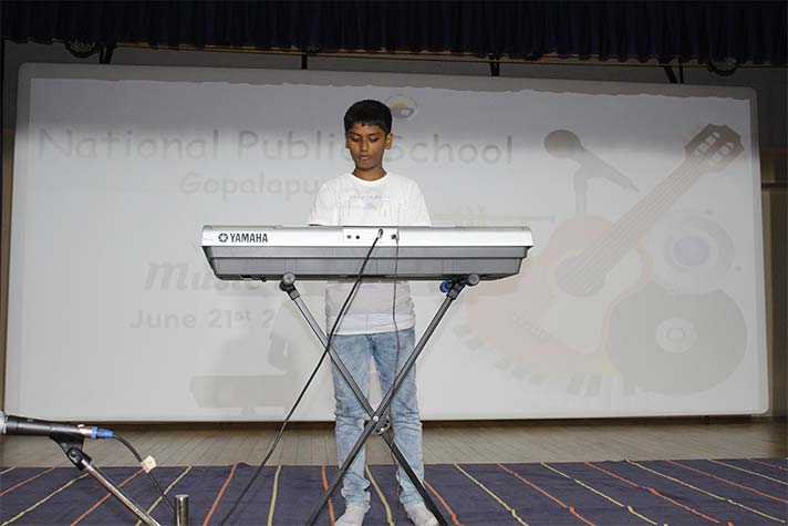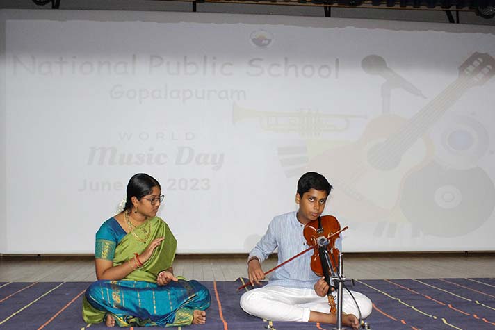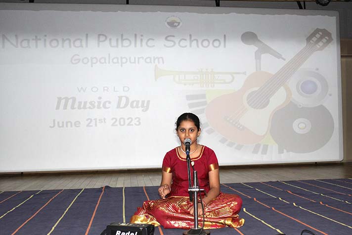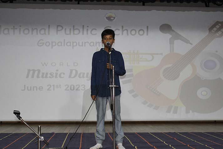 National Public School celebrated its second World Music Day Celebrations on 21st June 2023. The event featured a plethora of performances by the students of grades 6 to 12, ranging from Carnatic vocals to instrumentals of popular songs. The event started with a small speech about the history and appeal of World Music Day. This was followed by more vocal and instrumental performances that captivated the audience and were met with tremendous cheers! The celebrations came to an end with a Carnatic Mangalam that left the students with a better understanding and appreciation for all kinds of music around the world.