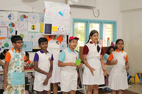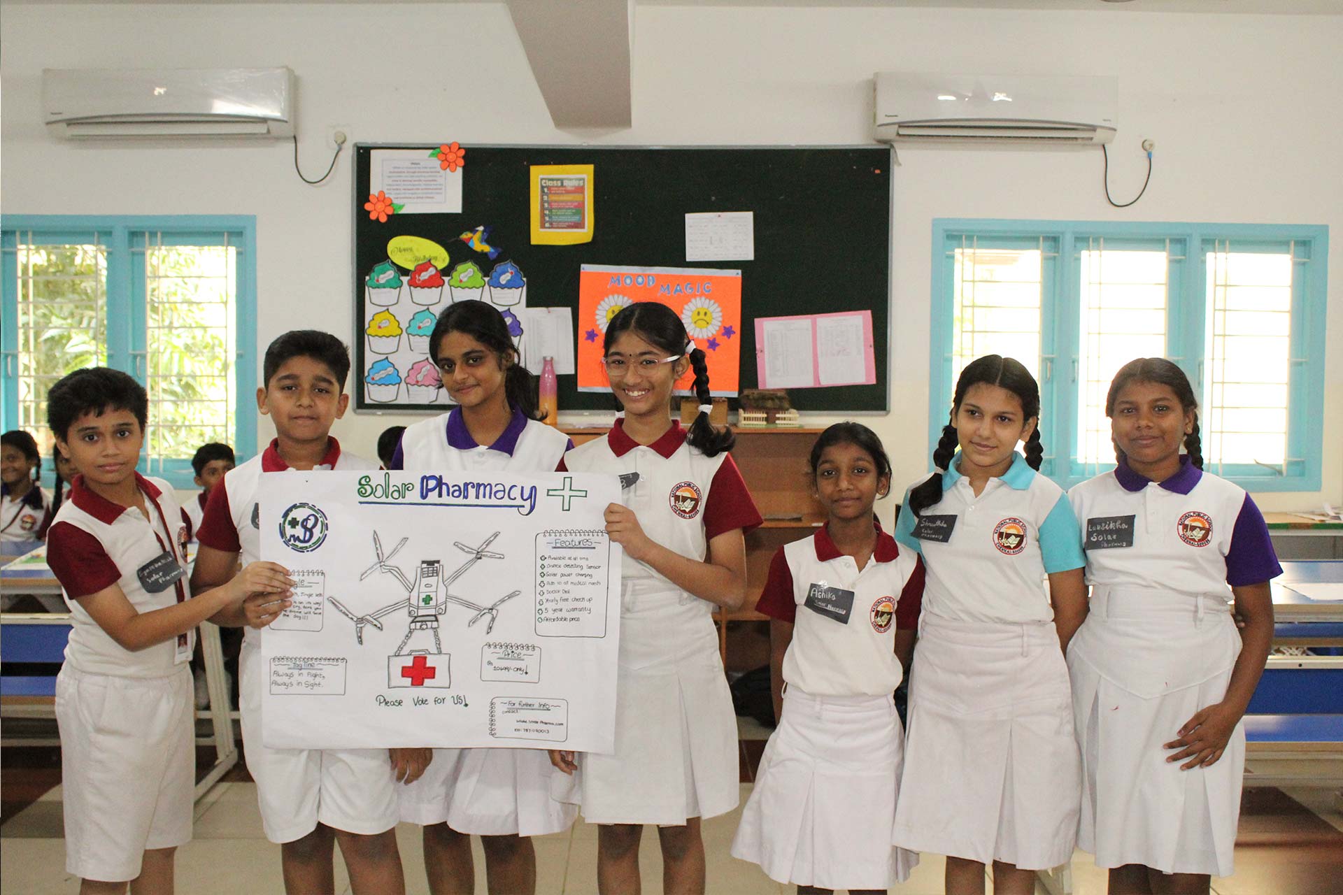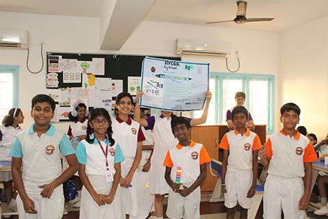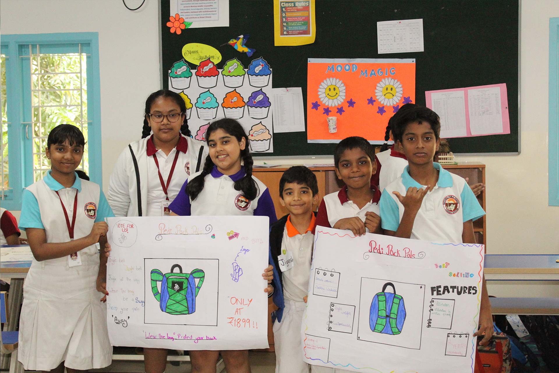 Enthusiastic involvement was observed from Grade VI students, who, with great zeal, applied their skills to conceptualize and develop innovative products within their teams. The creative process involved not only the creation of the product but also the design of a distinctive brand mark and tagline. To enhance their presentation, students crafted visually appealing handouts and posters that comprehensively detailed the characteristics of their respective products.